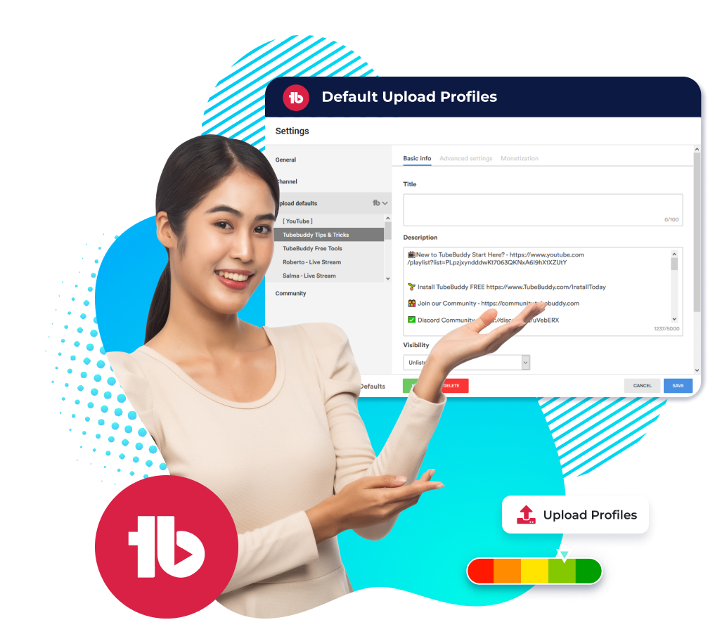 Gone are the days of having to reuse the same upload default. TubeBuddy’s Default Upload Profiles allow you to create and save multiple presets for titles, descriptions, and tags, each designed to cater to different topics.